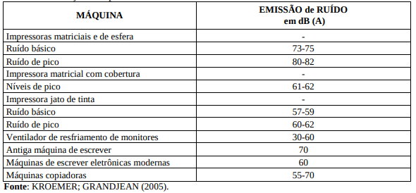 Tabela 1 - Emissões de ruídos aproximadas de máquinas de escritórios. Medição feita no nível da cabeça dos operadores