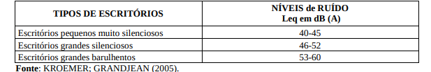 Tabela 4 - Níveis de ruídos usuais em escritórios