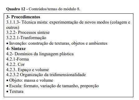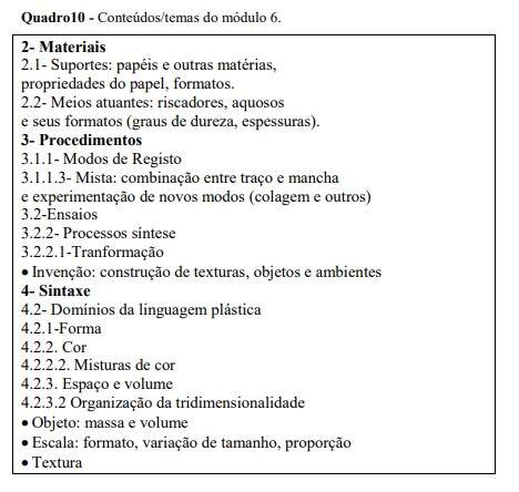 Considero que a minha experiência como artista plástica demonstrou ser fundamental no momento de concepção do projeto, no decorrer da lecionação das aulas e na obtenção dos resultados alcançados. Por ter contato com o mundo artístico e por conhecer várias técnicas e materiais, permitiu-me exemplificar na prática esses aspetos e ajudar os alunos a fortalecerem o conhecimento ao nível teórico e prático. Relembrando Perrenoud, é necessário que o professor domine o conteúdo que ensina e tenha “uma prática pessoal do uso dos conhecimentos na ação” (Perrenoud, 1999: 56). Renzulli reforça (Ap. Fleith, 2007), salientando que o professor deve dar a sua própria contribuição criativa, de modo a poder estimular nos seus alunos o interesse, a motivação e a curiosidade.