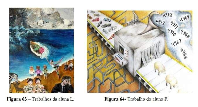 - “Descobri que, de facto, a arte permite-nos expressar o que sentimos. Desenvolvi várias técnicas, permitiu-me desenvolver melhor as ideias e a utilizar melhor os símbolos de uma maneira menos óbvia, para que não seja tão fácil para o público compreender a minha ideia” (Aluna L, cf. Apêndice L, folha L2).