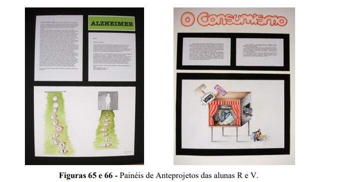 Para sensibilização do tema, foram apresentadas imagens de painéis de anteprojeto de alunos da Escola Secundária António Arroio, da disciplina de Design de Produto, tal como de alunos do Colégio do ano letivo anterior, da disciplina de Oficina de Artes (Ficheiro de figuras D). Foi também explicado o modo de execução de uma memória descritiva, com todos os seus conteúdos necessários.