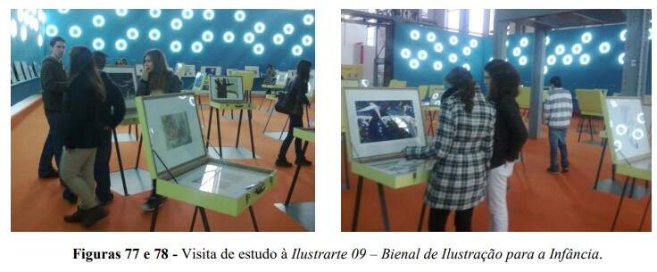 No dia 22 de fevereiro foi realizada a visita de estudo à Ilustrarte – Bienal de ilustração para a infância, no Museu da Eletricidade (Figura 77 e 78; Ficheiro de figuras T, T3). Esta visita possibilitou aos alunos a compreensão de como se articula a palavra e a imagem e como se desenvolvem ideias a partir de um texto. Para além disso possibilitou a tomada de conhecimento das técnicas e materiais bastante diversificados que os ilustradores contemporâneos utilizam.