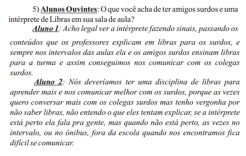Ainda explanaremos a respeito da formação dos professores no contexto da inclusão; apresentando a entrevista realizada com profissionais da educação de surdos na escola inclusiva e o que pensam os alunos ouvintes, surdos e seus familiares a respeito da educação inclusiva a fim de chegarmos aos resultados e análises dos resultados obtidos durante entrevista.