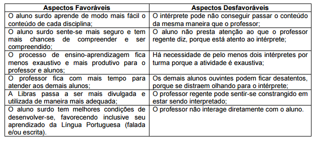 Dessa forma, analisar a mediação do interprete na construção da aprendizagem se faz necessária, uma vez que no Brasil esse profissional não precisa ser graduado, tendo apenas como exigência obter um diploma de pelo menos 120 horas em curso (ou como disciplina em seu histórico escolar) de LIBRAS.