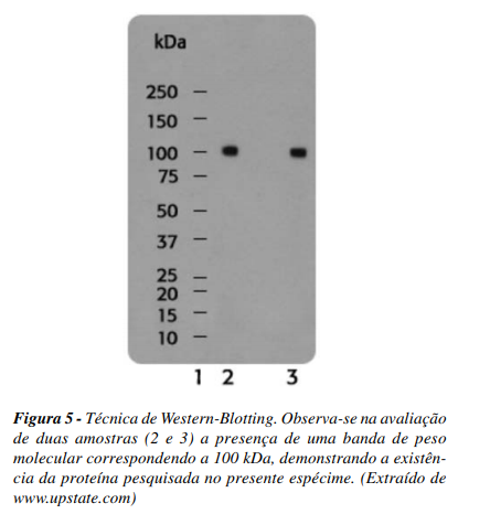 Feito isto, a identificação de uma determinada proteína naquele tecido poderá ser feita através da adição de um anticorpo específico e sua demonstração através de corante, conforme demonstrada na Figura 5.