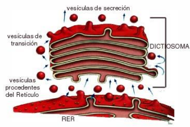 é um amontoado de sacos achatados e delimitados por membranas. Recebe freqüentemente vesículas provenientes do RER.
