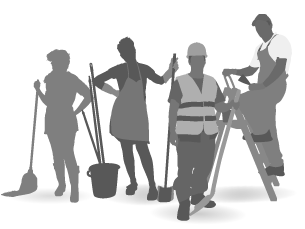 - Limpeza predial: realizada por contratados, que necessitam de conhecimentos básicos sobre aplicação de produtos químicos e habilidade no manuseio de equipamentos;