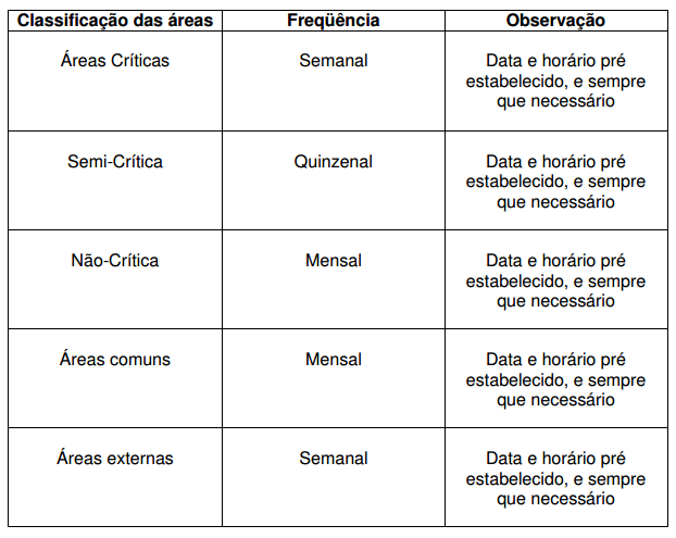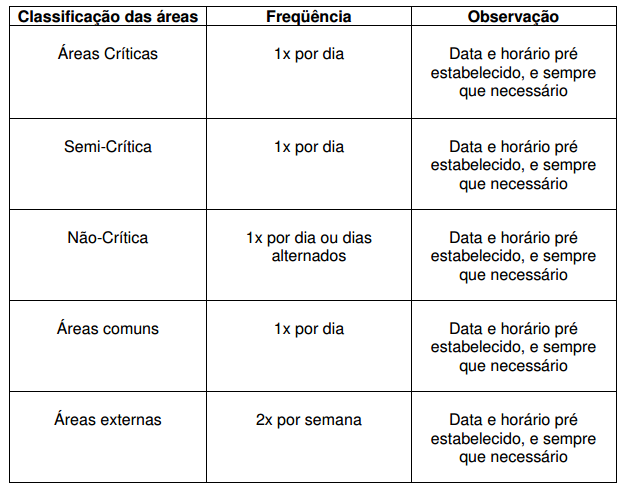 Frequência que deverá ser realizada a limpeza concorrente: