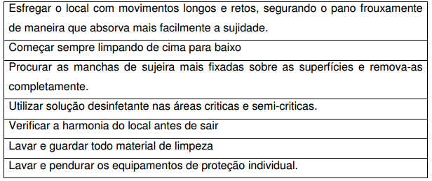 • As águas devem ser renovadas de sala para sala, os panos devem ser higienizados de superfície para superfície.