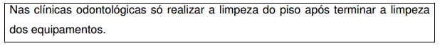 • Ao término da limpeza de cada área, o material deverá ser lavado em água corrente, com detergente neutro, assim como proceder à troca da água e/ou da solução utilizada.