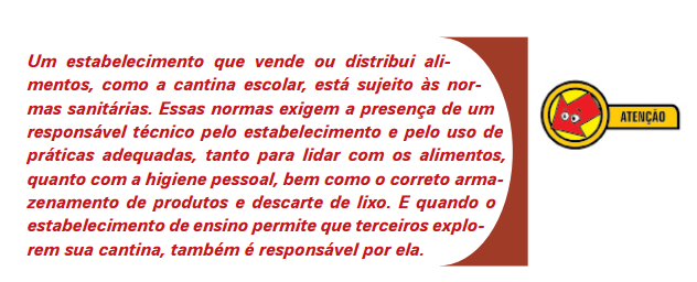 A falta de higiene em um estabelecimento de ensino pode causar a interdição da cantina e, conseqüentemente, a demissão de funcionários do estabelecimento. A lei permite que sejam aplicadas multas pesadas para os proprietários e prevê o pagamento de indenizações às vítimas. Sempre é bom lembrar que a propagação de epidemias pode ser facilitada pela falta de higiene e a escola não é uma exceção. Ao contrário, pelas aglomerações comuns nos pátios e nas salas de aulas, a falta de cuidados com a higiene pessoal, alimentar e das instalações escolares pode ajudar uma doença a espalhar-se. Pode causar, até mesmo, mortes na escola e fora dela.