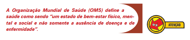 A saúde, conforme é entendida pela Organização Mundial de Saúde (OMS), é um estado de completo bem-estar. Isso significa estar bem nos aspectos físico, mental e social. Em outras palavras, saúde não é apenas a ausência de doenças e, sim, um bem que pertence ao indivíduo e à coletividade. É, também, relacionada com a qualidade de vida da sua comunidade e de sua família. A legislação brasileira deixa claro que a saúde é um direito de todos e um dever do Estado (Constituição Federal, artigo 196), a ser garantida por meio de políticas sociais e econômicas. Indiretamente, portanto, a legislação está falando da higiene e da educação.
