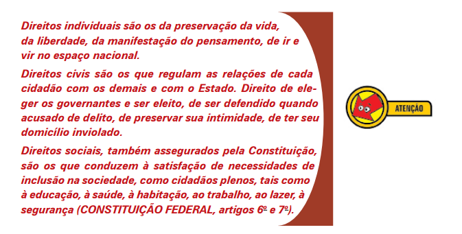 A fonte do atual pensamento, das teorias avançadas sobre estes temas não é mais a sensação do medo, porém a afirmação dos direitos. Direitos individuais, direitos civis e direitos sociais, que já estudamos em módulos anteriores e aqui rapidamente recordamos.
