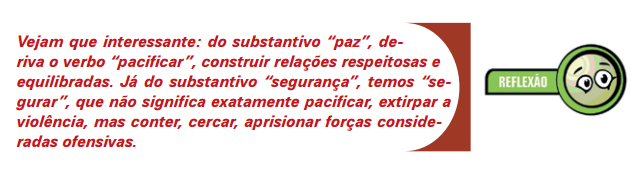 Evidentemente, essa concepção democrática de segurança, que considera a desigualdade entre as pessoas e a negação dos direitos como violências fundantes da insegurança, não está dada: ela precisa ser construída na cabeça de educadores e educandos e na prática escolar. Podemos até concordar que, como “produto social”, a segurança é um “equilíbrio de forças”. Daí o velho ditado: se queres a paz, prepara-te para a guerra. Mas, como processo e projeto educativo, a segurança é a “arte da mediação dos conflitos para a garantia dos direitos e construção da paz”.