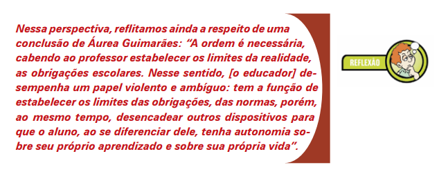Novamente recorremos a Áurea Guimarães, a pesquisadora que estudou profundamente o que se passava em escolas pú- blicas nas décadas de 1980 e 1990. Ainda hoje, primeira década do século XXI, convivemos com pichações, depredações, vandalismos, quebradeiras nas escolas, frutos não somente de ações externas, como dos próprios alunos, não é verdade?