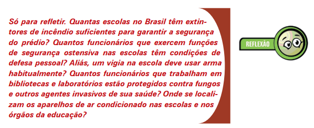 É importante induzir todos a uma reflexão sobre o que deve ser feito e sobre o que falta ser feito e reunido em uma política municipal de segurança, uma política estadual de saúde e segurança e uma política nacional de ação contra a violência e a favor da segurança na sociedade e na escola. Cursar o Profuncionário faz essa diferença: sempre pensar antes de fazer. E pensar juntos, para construirmos juntos nossa identidade e alcançar os objetivos da educação pública.