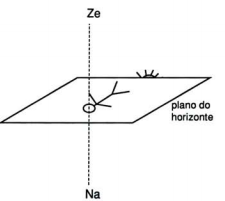 O Sol está quase a desaparecer, e deitamo-nos no chão, na areia ainda quente do dia de verão. Olhamos naturalmente para o ponto do céu que fica exatamente por cima de nós, na direção perpendicular ao plano do horizonte. Esse ponto é o Zénite (Ze), na mesma direcção, mas no sentido oposto - isto é - precisamente por baixo de nós - fica outro ponto imaginário, chamado Nadir(Na).