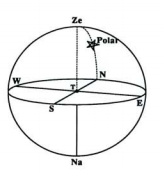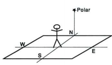 Se agora consideramos o ponto do horizonte diretamente sob a estrela Polar; esse é o ponto cardeal Norte(N). Se nós voltarmos para o Norte, à nossa esquerda fica o ponto cardeal Oeste(W) (a 90°medidos sobre o plano do horizonte) e à nossa direita o ponto cardeal Leste(E). Atrás de nós, oposto ao Norte, fica o ponto cardeal Sul(S).