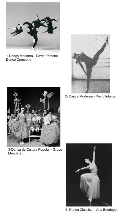 As fotos acima apresentam corpos que, dentro de suas possibilidades, desenvolveram habilidades por meio de uma técnica específica e que de acordo com as práticas constantes, encontraram a facilidade e a espontaneidade em suas linguagens determinantes. A foto 1 apresenta a Cia de David Parsons, coreógrafo e bailarino americano, de formação clássica, atlética e moderna. Ele fez parte da Cia de Dança Moderna de Paul Taylor, e desenvolve seu trabalho coreográfico em corpos de bailarinos que possuem uma formação clássica e atlética. Seus movimentos exigem preparo e condicionamento físico intenso. O bailarino encontrou, em seu corpo, a equivalência entre a linguagem da dança e o movimento atlético.