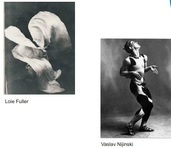 Os corpos de Isadora Ducan e de Loie Fuller sugerem uma liberdade na ação de expressar movimentos. Nijinski, precursor da dança clássica, foi o iniciador da dança moderna, trazendo para o corpo e para o palco, uma criação mais ousada e diferenciada das estruturas da dança clássica. Amigo de Duncan, Nijinski buscou entender um pensamento e uma filosofia de perceber o movimento do corpo como um potencial de fonte de expressão para explicar a emoção humana, por meio de um novo comportamento e movimento corporal e coreográfico.