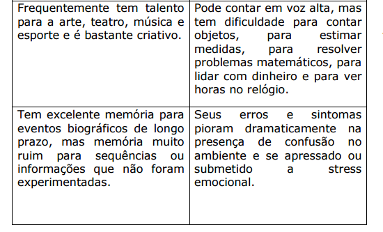 • Problemas para aprender, evocar e ou usar fatos e procedimentos numéricos ( ex.: tabuada, divisões longas);