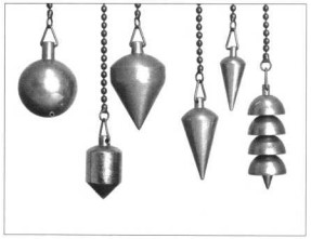 Os pêndulos de metal são mais pesados que os de outros materiais. Prefira pêndulos com forma pontiaguda, se for trabalhar sobre gráficos. A ponta permite uma leitura mais fácil do ponto indicado.
