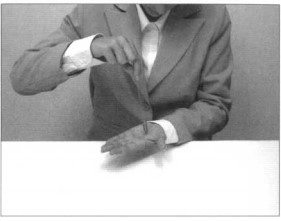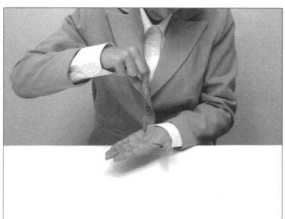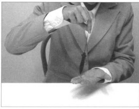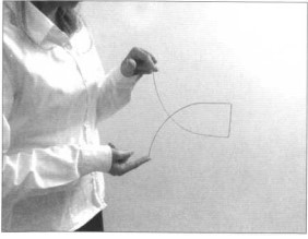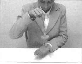 Vire o pêndulo sobre a palma da mão livre. Tenha especial atenção com a postura do braço. Não o deixe muito levantado, o que cria tensão muscular e impede de sustentar o pêndulo na posição de trabalho por períodos mais longos. O oposto, ou seja, o braço colado ao corpo, tende a impedir o movimento mais rápido e amplo do pêndulo.