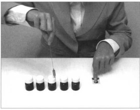 Suponhamos que você esteja investigando remédios ou quaisquer outras substâncias. Os vidros, por se tratarem de objetos maiores, podem ser indicados com o dedo indicador da mão livre. Em se tratando de um grande número de peças a investigar, faça uma primeira seleção; os vidros resultantes devem ser alinhados e sujeitos a uma segunda seleção, esta final.