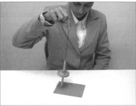 Deixe o fio escorregar por etapas, meio centímetro por vez e, demoradamente, verifique se o pêndulo entra em giro, indicando ter alcançado o ponto correto de suspensão.