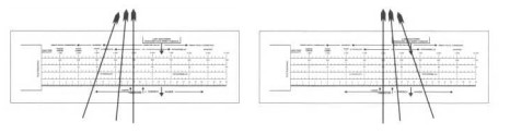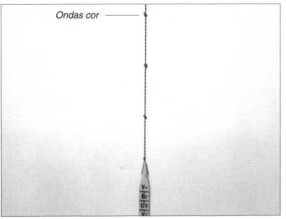 Mais uma vez, o exemplo oposto, o pêndulo lançado num alto patamar inclina-se para a esquerda, indicando um comprimento de onda inferior para este testemunho.