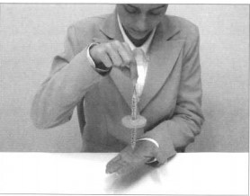 Agora que você já escolheu seu pêndulo, vamos acertar o ponto de suspensão, o que facilitará a detecção, proporcionando uma resposta mais rápida. Suspenda o pêndulo ao contrário, sobre a mão livre. Enrole lentamente a corrente ou fio de suspensão sobre a palma da mão.