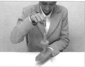 Mantenha a ponta do pêndulo um a dois centímetros acima da palma da mão livre. Em determinado momento, ele espontaneamente girará, indicando o ponto de suspensão adequado.