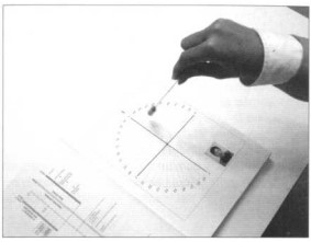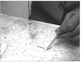 Sobre um mapa da região podemos usar qualquer uma das duas técnicas; pêndulo em giro ou pêndulo lançado. Dê preferência a esta última se a área do mapa for de boa dimensão.