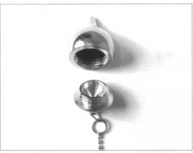 A parte superior deste conhecido pêndulo desenrosca-se, permitindo o acesso ao interior.
