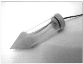 Um amigo vem até nós. Acaba de comprar uma gleba de terra. No local podem encontrar-se pequenas amostras de determinado minério. O amigo gostaria de saber se no local existe alguma jazida cuja exploração comercial seja compensadora. Você colocará um pequeno pedaço do minério (testemunho do mesmo) dentro de seu pêndulo Mermet e fechará a tampa.