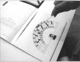 Lentamente fomos corrigindo o último exemplo e progressivamente, à medida que trazíamos o pêndulo mais para a direita, o ângulo por este produzido foi diminuindo, até que finalmente balançou transversalmente à régua de Bovis e pudemos ler o índice de vitalidade em 6.500 Â.