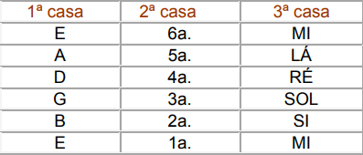 Braço do Violão e suas Notas Correspondentes: