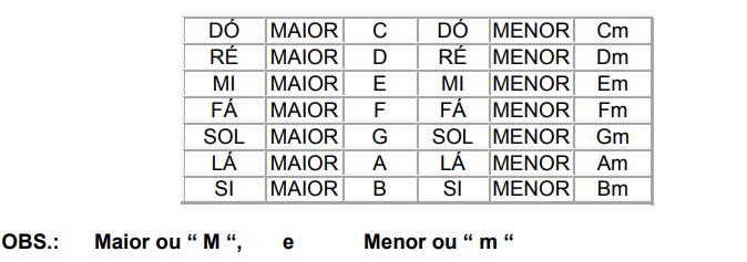 Obs.: Obedecer apenas quando for Tons Maiores e Menores.