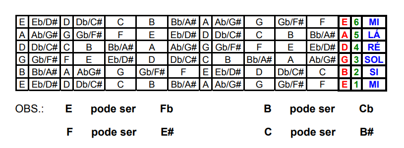 Obs.: As notas Mi e Si não admitem Sustenidos.