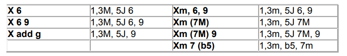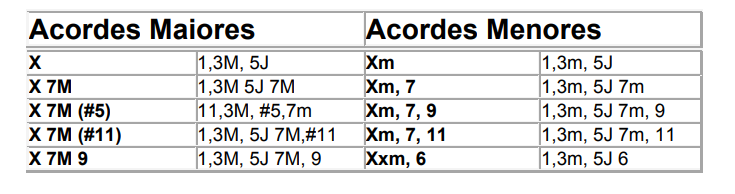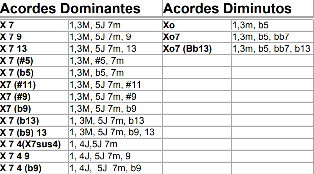 Nota: Todos os graus dissonantes introduzidos em um acorde devem fazer parte obrigatoriamente da escala correspondente ao acorde.
