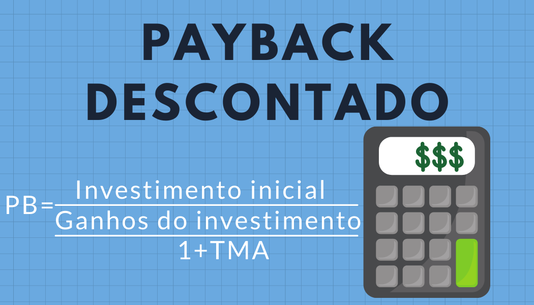 O payback descontado por sua vez considera o valor do dinheiro ao longo do tempo. Este utiliza uma taxa de desconto anual ou mensal, de acordo com o interesse do investidor, (geralmente a taxa utilizada é a TMA), desta forma todas as parcelas do fluxo de caixa terão o desconto dessa taxa.