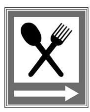 Restaurante é um estabelecimento no qual, mediante pagamento, é possível sentar-se à mesa para comer e beber, fora de casa. Se você está na estrada, é fácil identificar a proximidade de um restaurante através do símbolo ao lado.