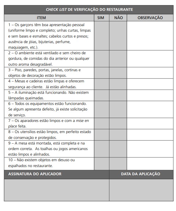 Além disso, alguns temas são ampliados nas informações contidas nos anexos, que você não deve deixar de considerar. O tema “segurança dos alimentos”, por exemplo, recebeu um anexo especial, pois é de fundamental importância na promoção daquelas experiências inesquecíveis para os clientes.