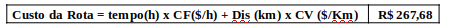 Uma vez calculados os valores unitários de todos os itens de custos, basta agrupá-los (R$/mês) e dividir o resultado pela utilização (número de horas trabalhada por mês) para se chegar ao custo fixo por hora (R$/hora). Os custos variáveis também devem ser agrupados (R$/ Km). Assim pode-se montar a equação de custo para uma rota: