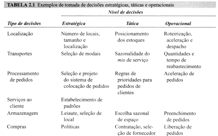 O planejamento logístico tenta responder aos questionamentos de: o quê? quando? como? nos níveis estratégico, tático e operacional.