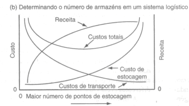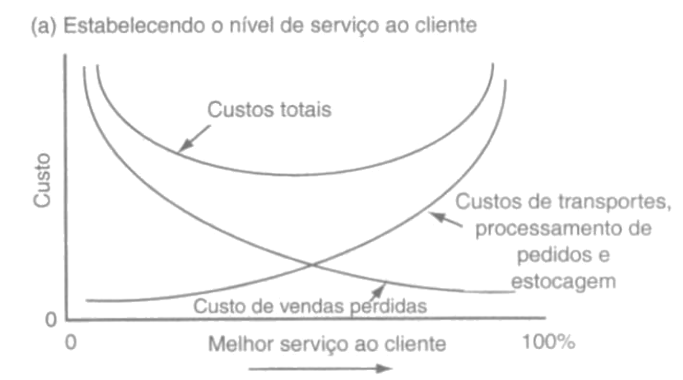 O problema é equilibrar os custos combinados de estocagem e transporte com a contribuição para a receita dos níveis de serviço fornecidos ao cliente.