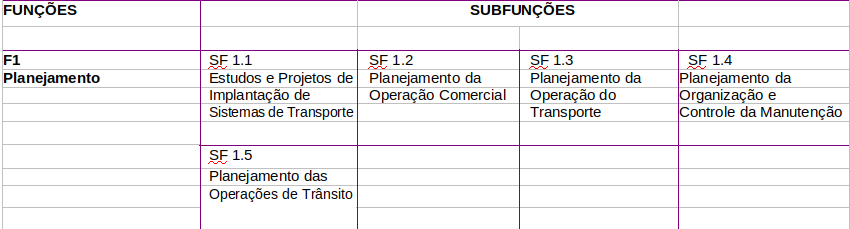Função 1. Planejamento: conjunto de atividades voltadas ao estabelecimento de estratégias e políticas para as operações de transporte e de trânsito, operações estas detalhadas nas demais funções.