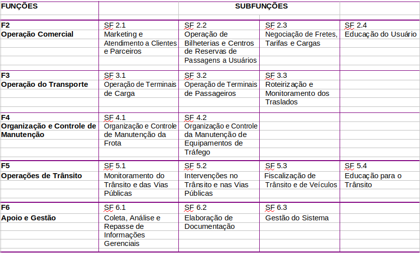 As matrizes de referência apresentadas a seguir resultam de uma análise na qual, para cada subfunção ou componente significativo do processo de produção na área de Transportes, foram identificadas: