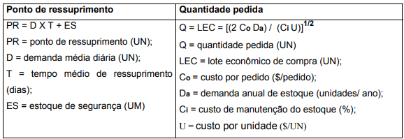 3) Logística dos estoques;