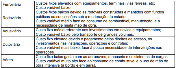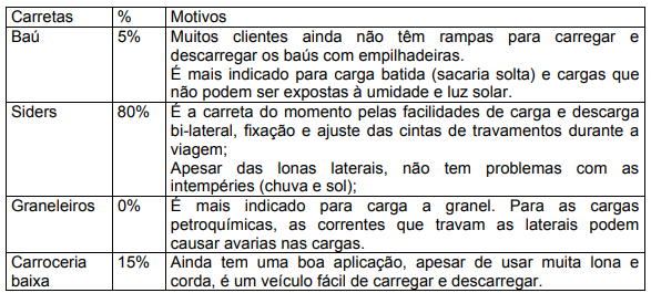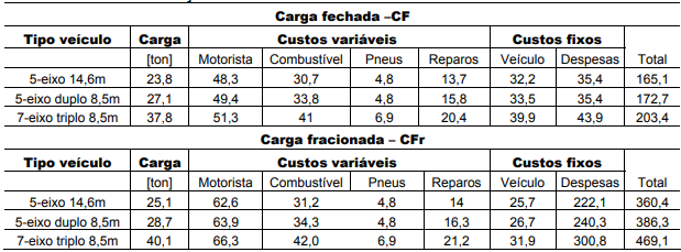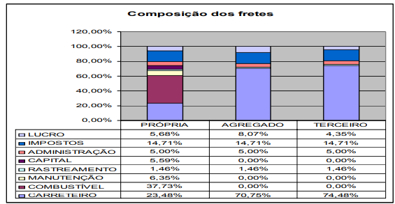Como o acesso às tabelas de fretes foi restrito, as margens podem variar para mais ou menos, mas, não compromete os objetivos de identificar as componentes de maiores custos e de economias potenciais.